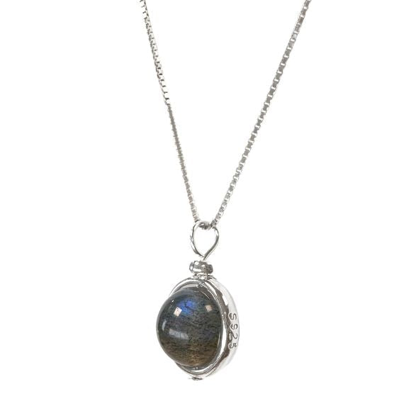 925er Silber mit drehbarem A+-Labradorit-Kugelanhänger
