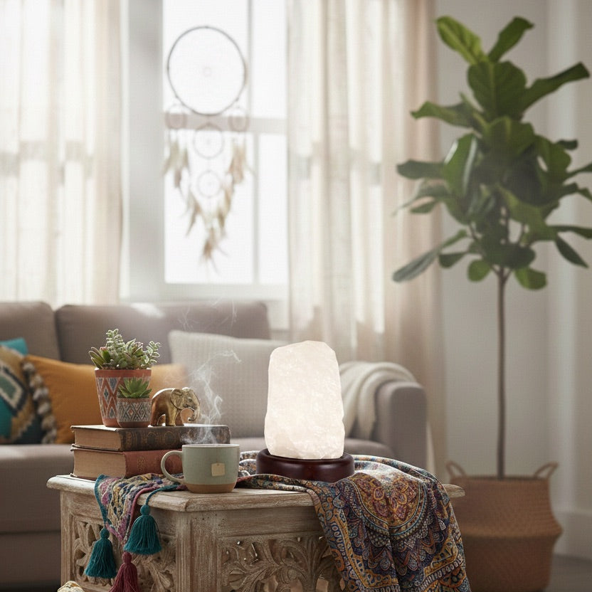 Die Bergkristall Lampe bringt ein helles, ruhiges Licht in deinen Raum. Der rohe, naturbelassene Kristall wirkt klar und kraftvoll – jede Lampe ist ein echtes Unikat.